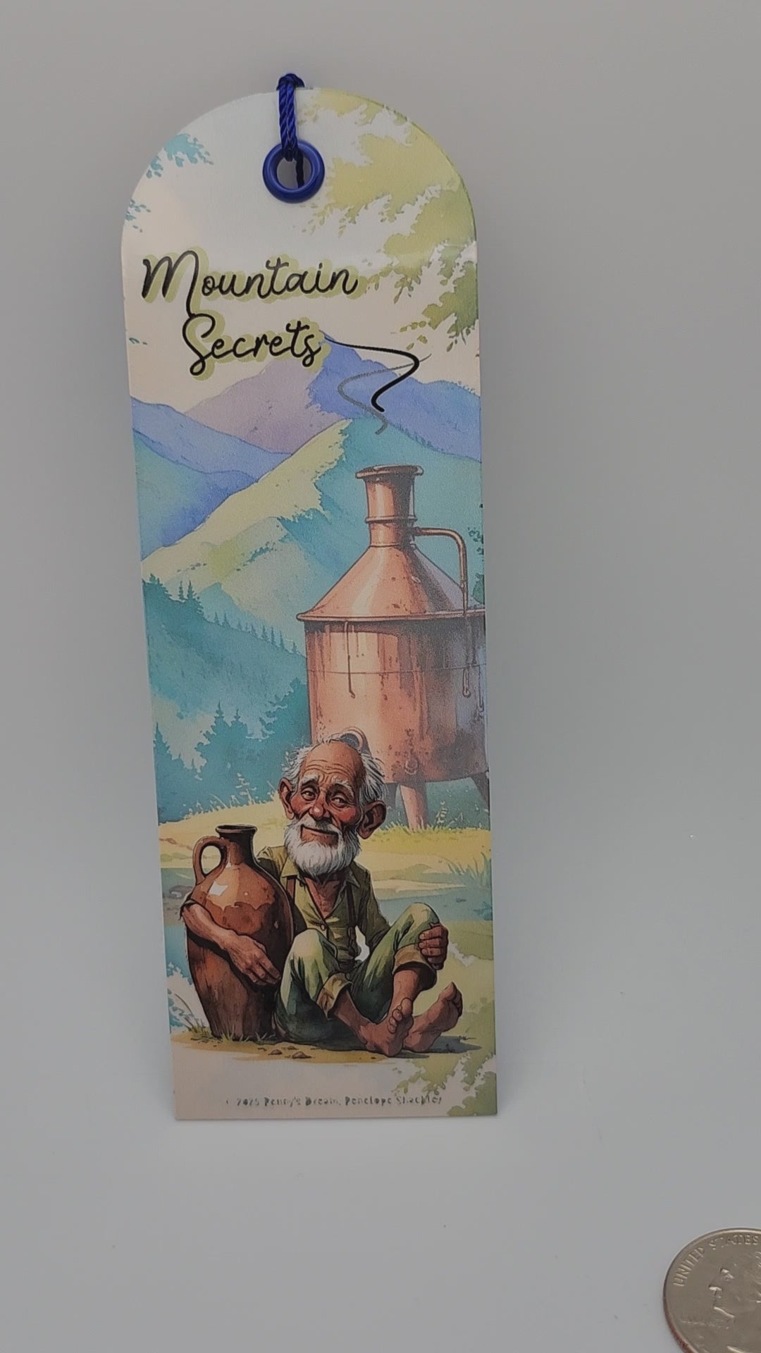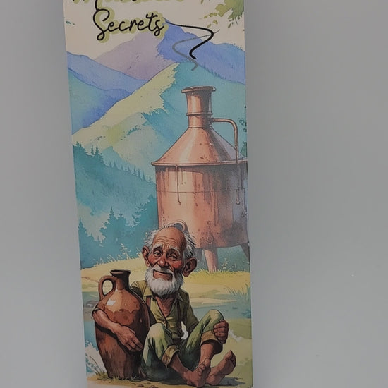 Mountain Secrets Bookmark – Moonshiner Design – 2x6 Laminated Cardstock with Dark Blue Tassel – Appalachian Collection – 2026 Edition